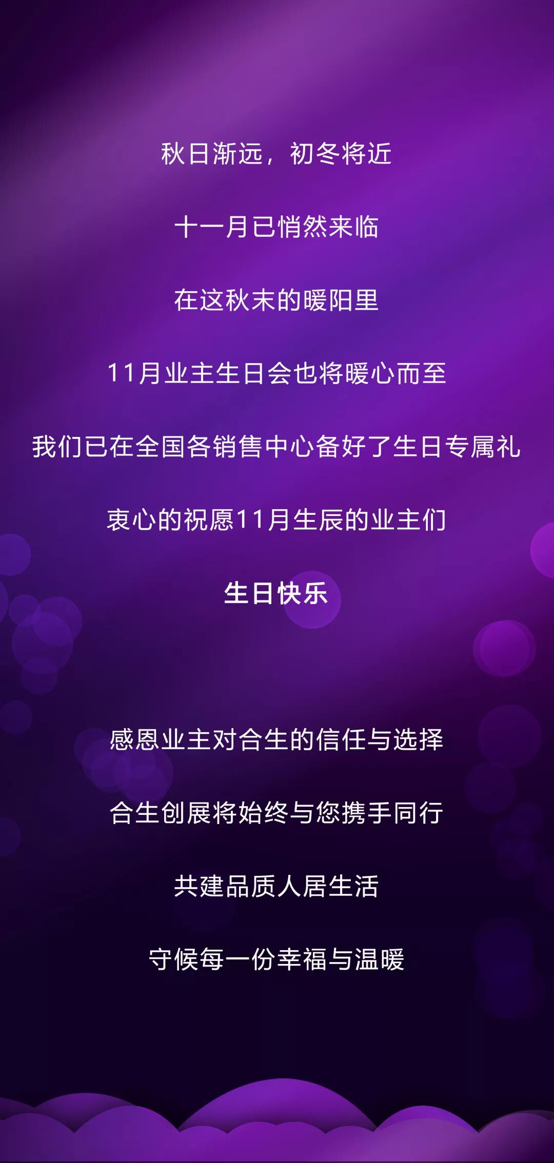 敬请所有合生创展11月过生日的业主
