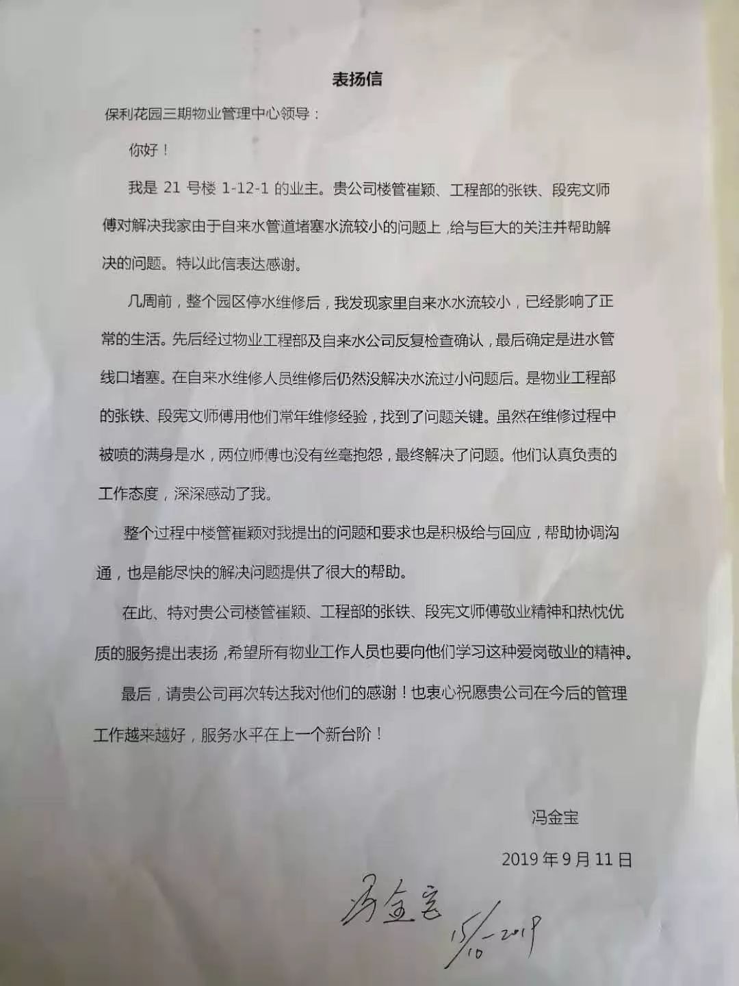 在保利物业,还有成千上万个“何晓峰”“韩双立”“孙楠”“曹福俊”这样爱岗敬业、踏实工作的同事们,为业主服务的好人好事更是层出不穷。