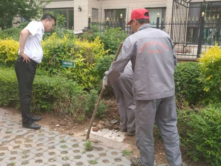 ▲给业主发礼品 ▲检查园区绿化正是他这样勤政务实的工作作风感动了园区的业主和身边的同事们,也得到了领导的充分肯定。而他这样以身作则的领导也让其他的员工们以他为榜样,每一个岗位的员工都在为了园区业主更美好的生活而努力着。