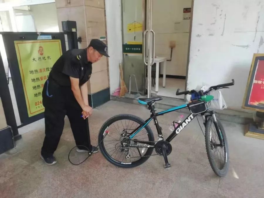 园区孩子们的足球和自行车经常需要补气,每次到东门岗时他都主动帮助孩子们补气,非常热情,提醒孩子们注意安全,家长们看到非常感动。