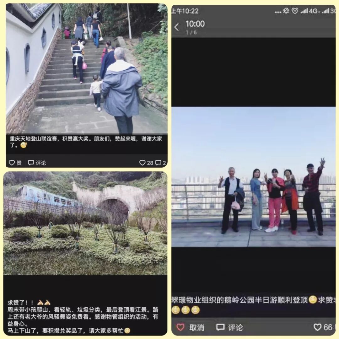 登山途中有吃的还有玩的,业主朋友们纷纷领取活动任务卡。“集赞红遍朋友圈”活动环节要求登山途中拍照打卡,照片元素需包含:轻轨、植物、最美微笑、登峰合影。以家庭为单位参与比赛,规定时间内朋友圈积攒最多的前10位幸运嘉宾将获得精美礼物一份。恭喜以下获奖作品……