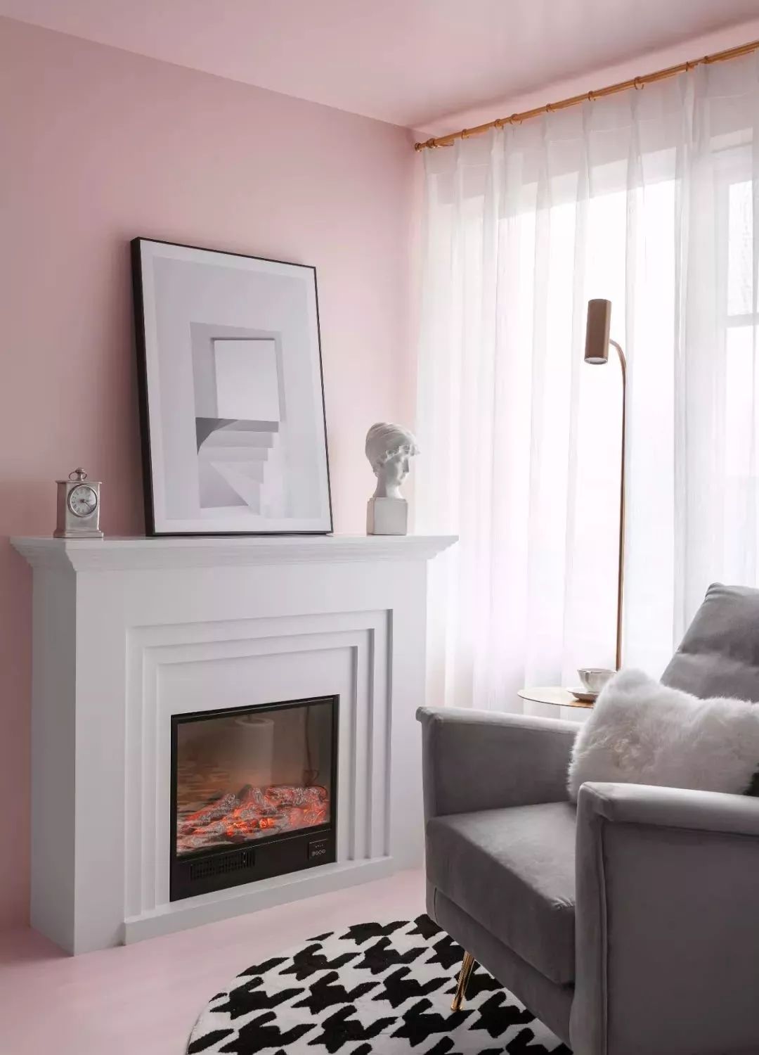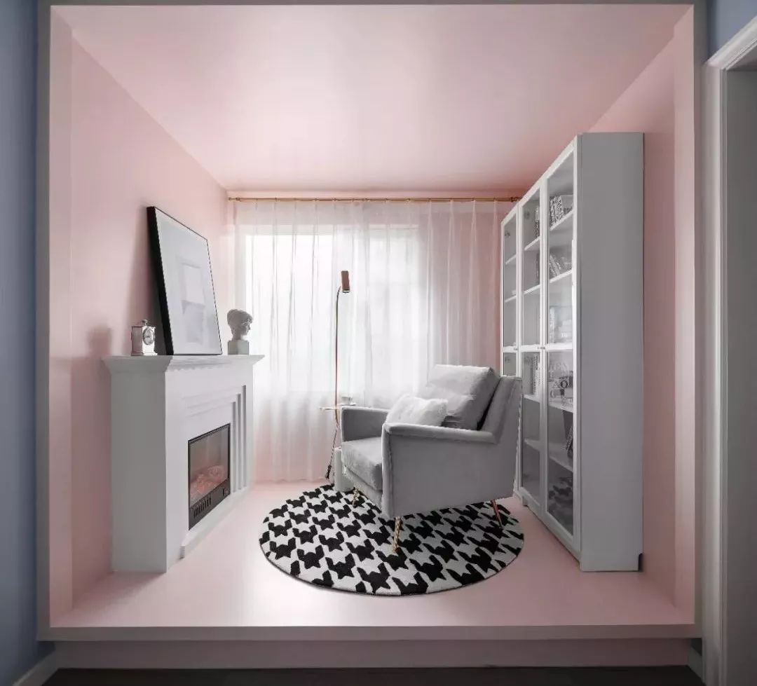 壁炉、雕塑、钟表...每一样都充满复古韵味,文艺气息甚浓,与现代风的黑白抽象画一同融入这片粉嫩的世界,有着别样的美感。