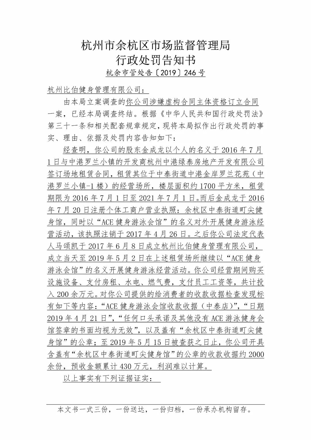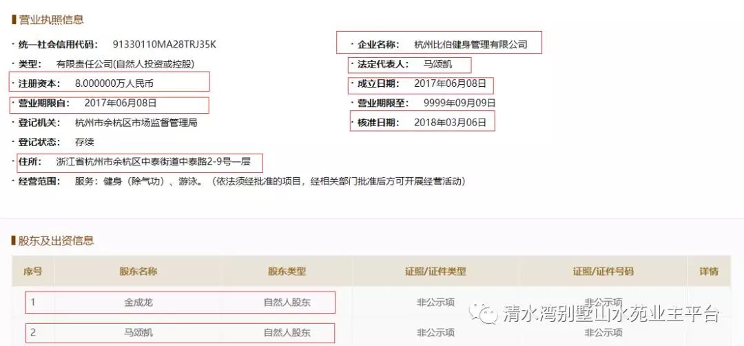 2017年6月8日,由原法定代表人“金成龙”与“马颂凯”出资8万员共同持股注册成立新的“杭州比伯健身管理有限公司”。
