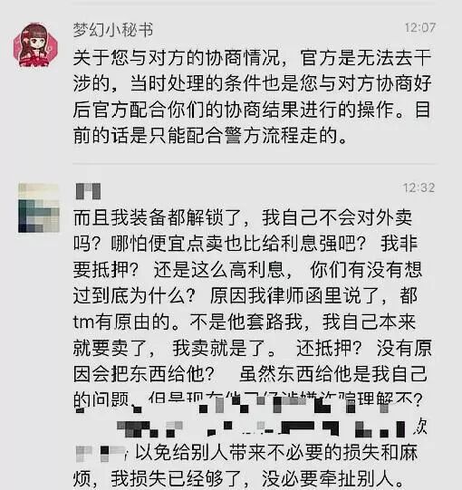 之后就是两人做生意的经过。陈无敌一直在强调,军火哥找他买了很多货,可是一直都处于不给钱的状态。最后,也是围绕着经济方面发生了纠纷。现在矛盾的焦点,就是陈武帝当时身上那几件很贵重的无级别,很多都是价值上百万的。关于装备这件事网易已经介入,目前还没有一个完整的结局。
