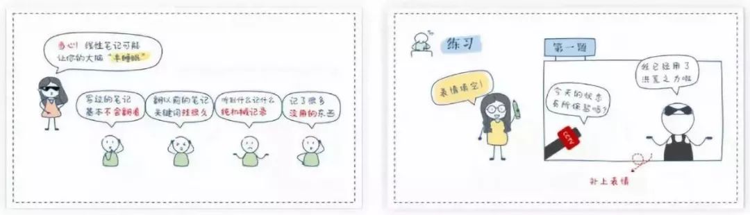 看看下面这份思路清晰的手绘听课记录,和传统密密麻麻的文字记录相比,是不是更加一目了然呢?