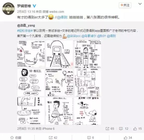 难以想象,画出这样优秀作品的同学,其实只是利用自己的业余时间学习手绘,而几个月之内,她在微博提交的手绘课作业,竟然被 @得到 、@罗辑思维 等微博转发。
