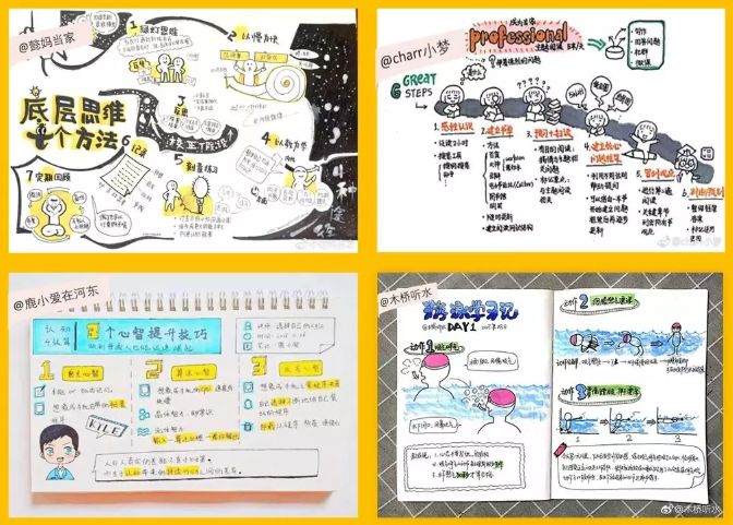 在工作中切实体会到了画图的好处,现在的她仍在坚持用手绘的方式呈现自己读书、上课、参加训练营所学到的内容,在她的微博相册里,都是一份份图文并茂、内容充实的手绘笔记。