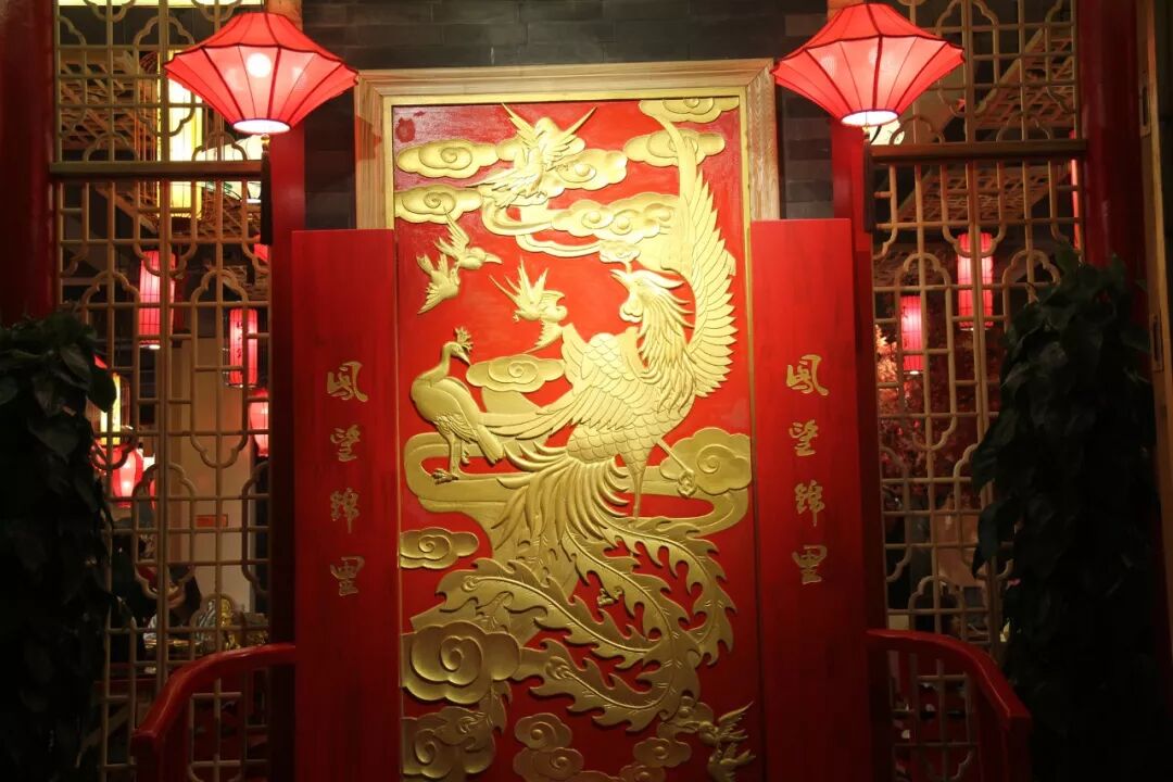 在昆明地铁白云站A口530m,藏着mini版的锦里古风古色的木门,颇具古韵的凤望锦里走进屋内,一步一景红墙金凤凰、威风凛凛的红柱、雕花窗幽幽的红灯笼高高悬起,一股古老的巴蜀韵味扑面而来