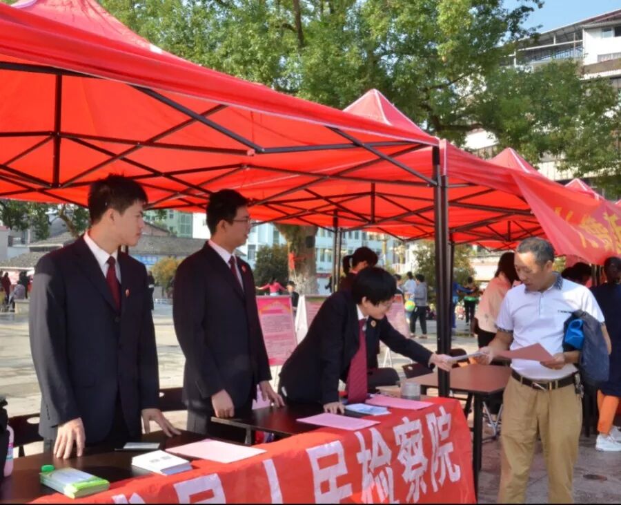 活动现场开展了丰富多彩的科普宣传活动,浦城县人民检察院干警耐心地向到场咨询的群众解答相关法律知识,并发放12309检察服务中心、公益诉讼、扫黑除恶等法律知识宣传单、宣传手册共计100多份。