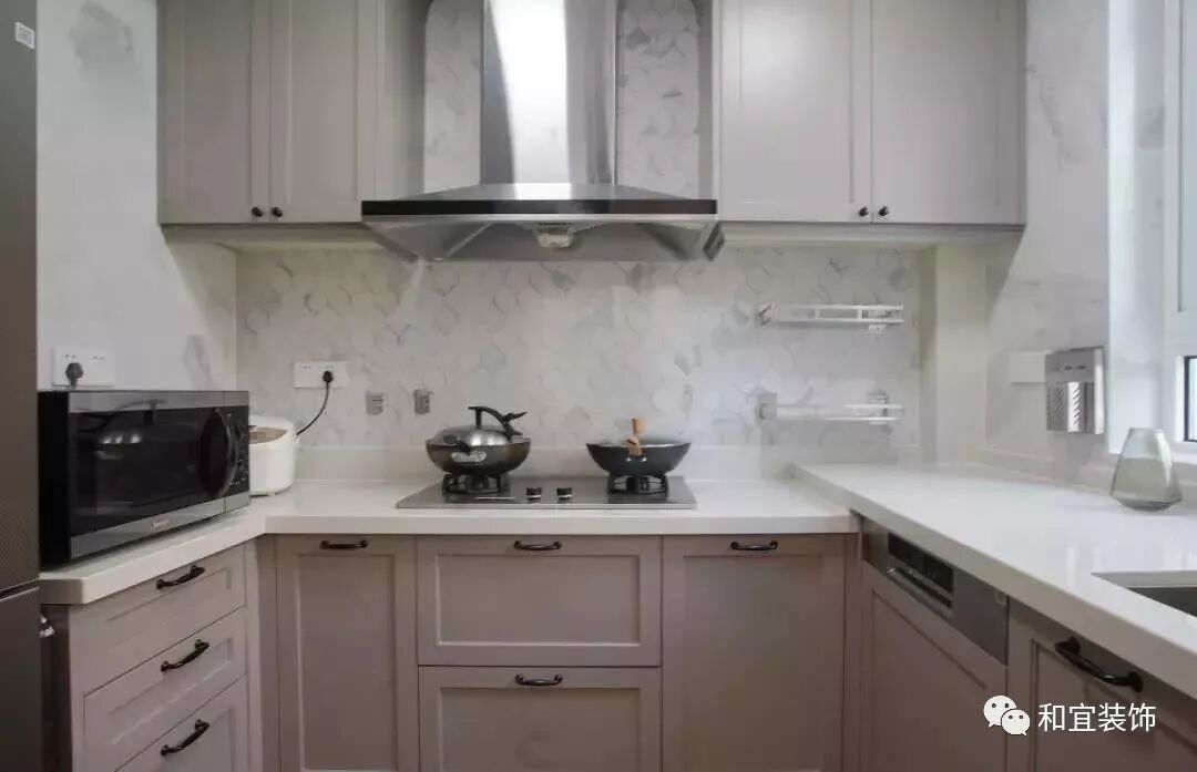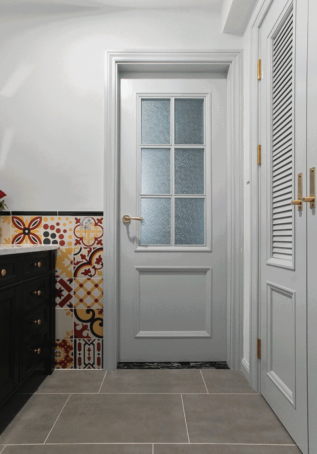 设计说明:房子的主人过着井然有序的生活。他有一个正在上大学的女儿。他有一个温暖幸福的三口之家。女主人喜欢安静舒适的现代美式空间。女主人希望家里温暖,充满生机,所以她花了很多时间装修。主要颜色是白色的墙壁,浅灰色和蓝色的橱柜和木门。墙面造型采用简单的装饰线条,既经济又简单。然后,在颜色的区分上,整个家看起来是层次分明的。饱满,以金属元素为点缀,营造出非常高品质的家居生活环境。