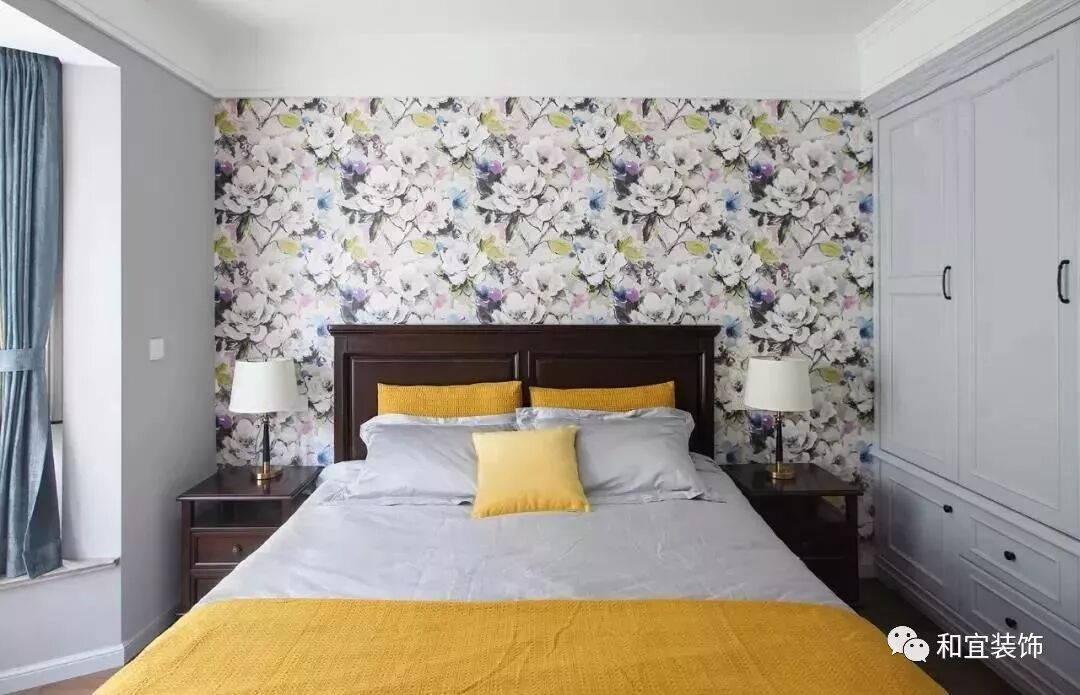 ●主卧 /没有压平的窗台造型,使空间更加宽敞,可以满足日光浴休息;墙头采用彩色花卉壁纸装饰效果,给整个房间带来活力!