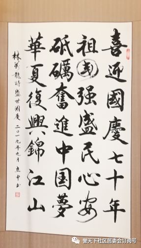 为庆祝新中国成立70周年,激发广大居民的爱国主义热情,丰富社区居民文化生活,誉天下社区于近期开展了以“不忘初心、牢记使命”为主题的书画展,展出了书画社精心创作的70幅书画精品,吸引了大量居民前来观展。