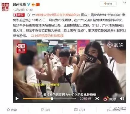 大家都知道,携带易燃易爆等违禁物品是不能上地铁的,过不了安检。但不知道您听没听说过,因为化妆不太合适,就过不了安检的呢?最近,广州地铁安检人员就拦下了几位浓妆艳抹的乘客,要求她们卸妆后再进站。原因是她们的妆容有些惊悚,看起来像是“带有血迹”。