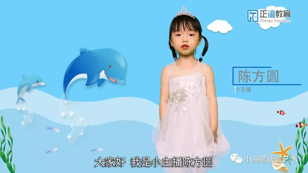 小主播:陈方圆 表达流利,发音清晰 小主播陈方圆最喜欢的动物是海豚