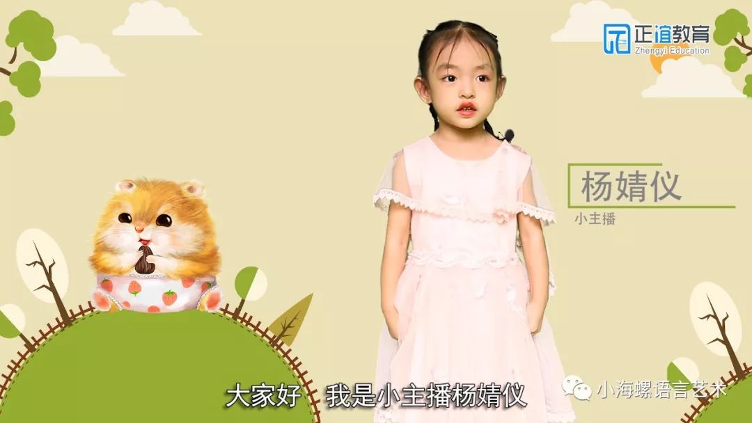 小主播:杨婧仪 表达流利,发音清晰 小主播杨婧仪最喜欢的小动物是仓鼠仓鼠的身子很小巧,胖乎乎的捧在手心里,就像一个柔软的小绒球很可爱也很好看