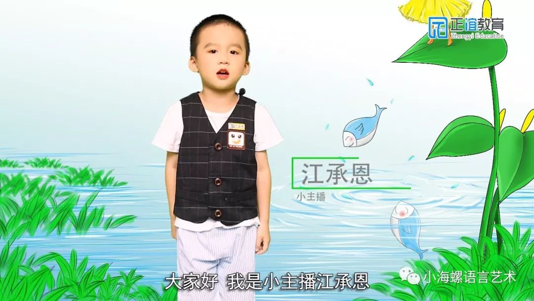 小主播:江承恩逻辑清晰,表述流利 小主播江承恩最喜欢的动物是鱼一群小鱼儿在水里自由地游来游去