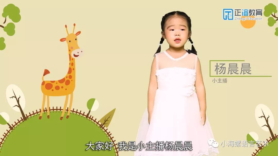 小主播:杨晨晨 表达顺畅,逻辑清晰 小主播杨晨晨最喜欢的动物是长颈鹿长颈鹿的四条腿又细又长就像一个踩高跷的演员2