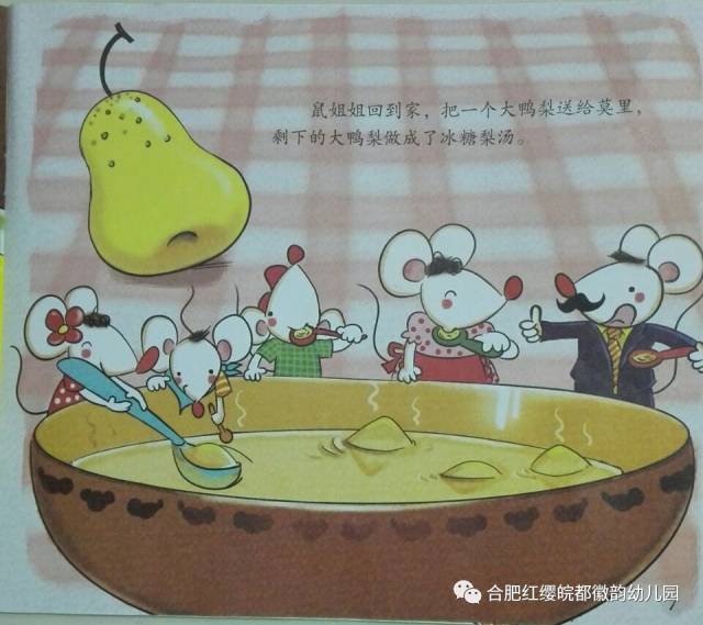 鼠姐姐回到家,把一个大鸭梨送给莫里,