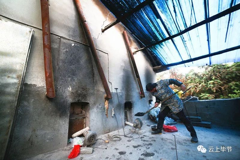 大山深处的豆香源食品厂里,村民正在往火炉里添加燃料