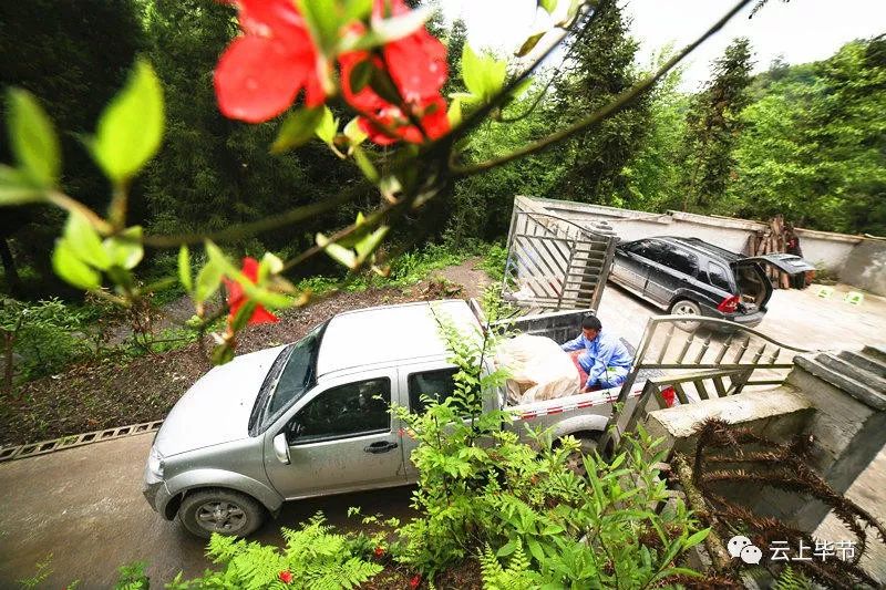 胡从锋将包装好的豆干装车,销往山外
