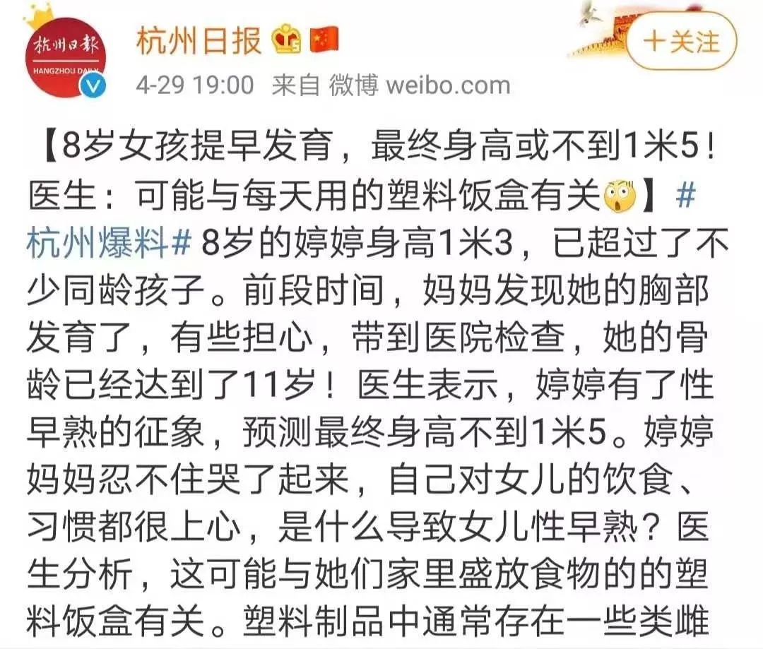 经过一番沟通,医生分析,这可能与她们家里盛放食物的的塑料饭盒有关。