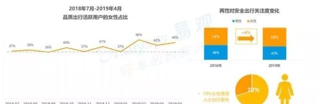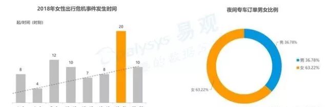 晚7点后女性出行安全系数低,女性偏好选择专车服务降低出行风险。基于2018年女性出行危机事件发生的时间统计,19-21时为安全系数最低的时间段,危机事件发生率占整体17%。品质出行平台首汽约车数据显示63.22%的夜间订单来自女性用户。更多女性用户出于安全考虑而更偏向于选择专车出行,从而降低夜间出行的风险(如暴力事件)。