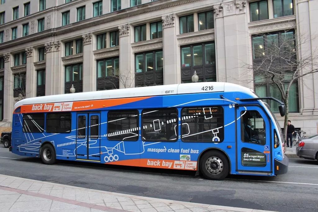 往返于back bay及洛根机场的Logan Express(图片来自CommonWealth Magazine)