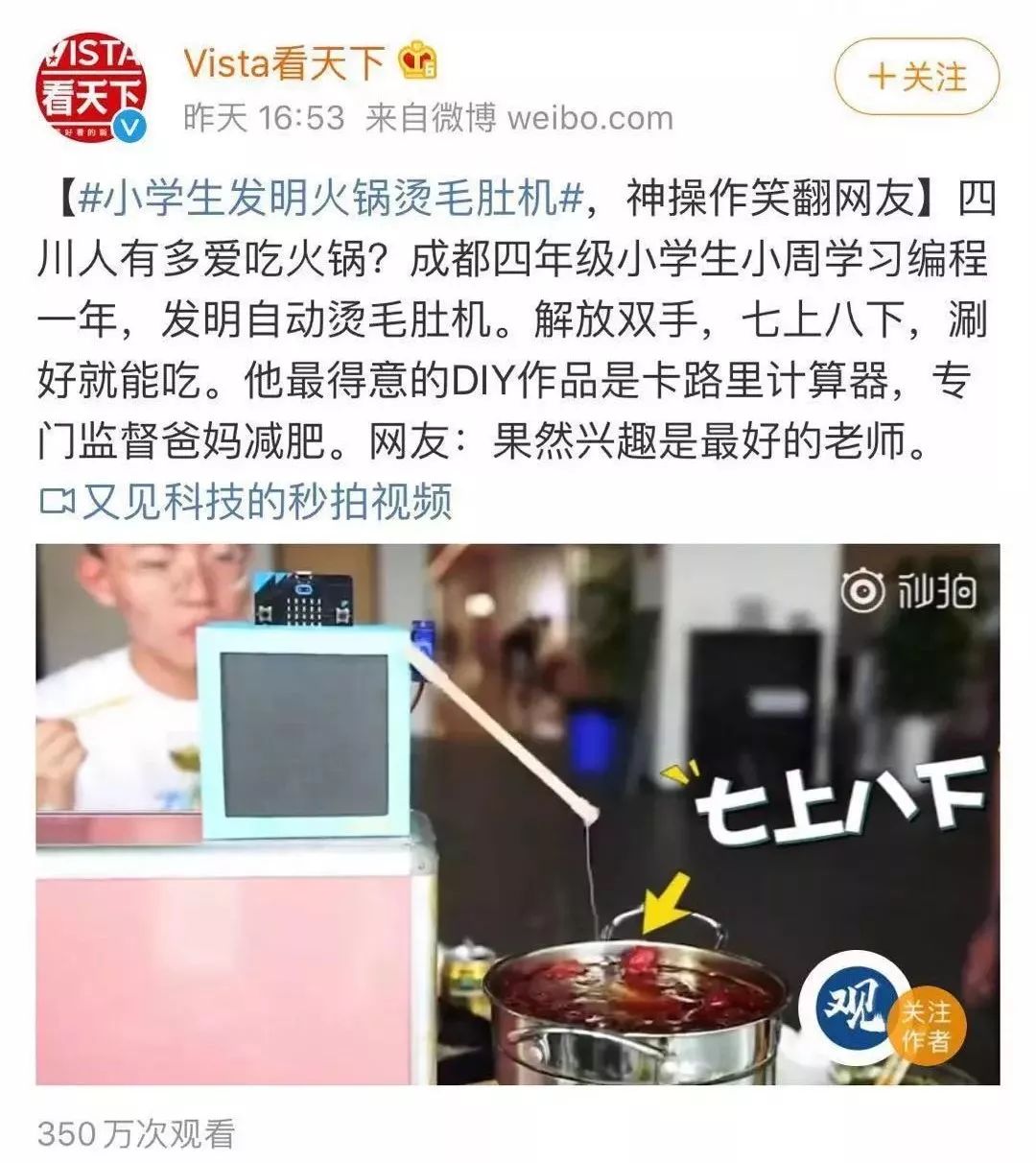 虽然这项发明还有改进的空间但对于一位小学生来说已经很了不起啦反观另一些“中年人”吃了这么多年毛肚除了抱怨涮老了有想过发明工具嘛!