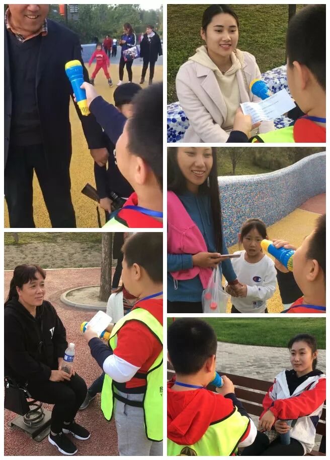 为庆祝祖国妈妈70华诞,悦声小记者以“随机采访”的方式献礼给祖国。在一个秋高气爽的午后,我们集体来到风景宜人的燕赵公园,在这里孩子们先跟着老师学习了祖国的发展历程,然后在燕赵公园里礼貌地向游玩的行人,围绕“国庆”有关话题展开采访,这是一次走出课堂,走进社会的当众讲话的历练,也是学生社会性交际提升的好契机。小记者准备了许多问题,想知道被采访者会如何回应,我们的小记者又会怎样追问吗?让我们回顾一下他们活动的精彩瞬间吧!