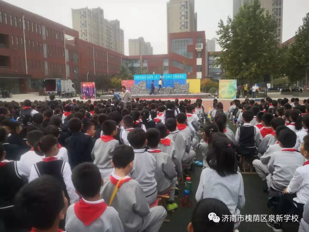 10月24日下午,济南儿童艺术剧院2018年度国家艺术基金传播交流推广资助项目—儿童剧《戴“星星”的孩子》在泉新学校进行巡演,全校师生齐聚操场,观看了演出。