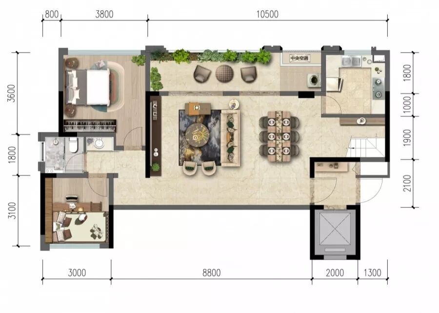 在同层空间内提供生活所需,打造出主人的私属领域。