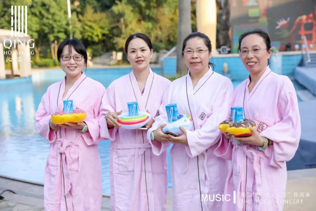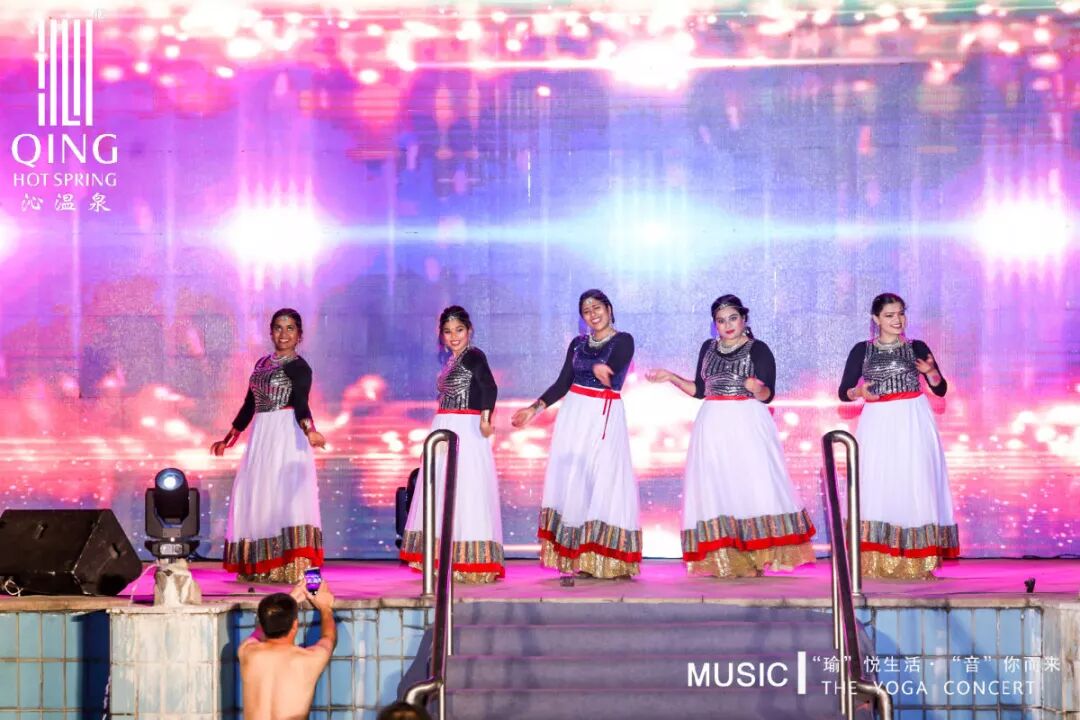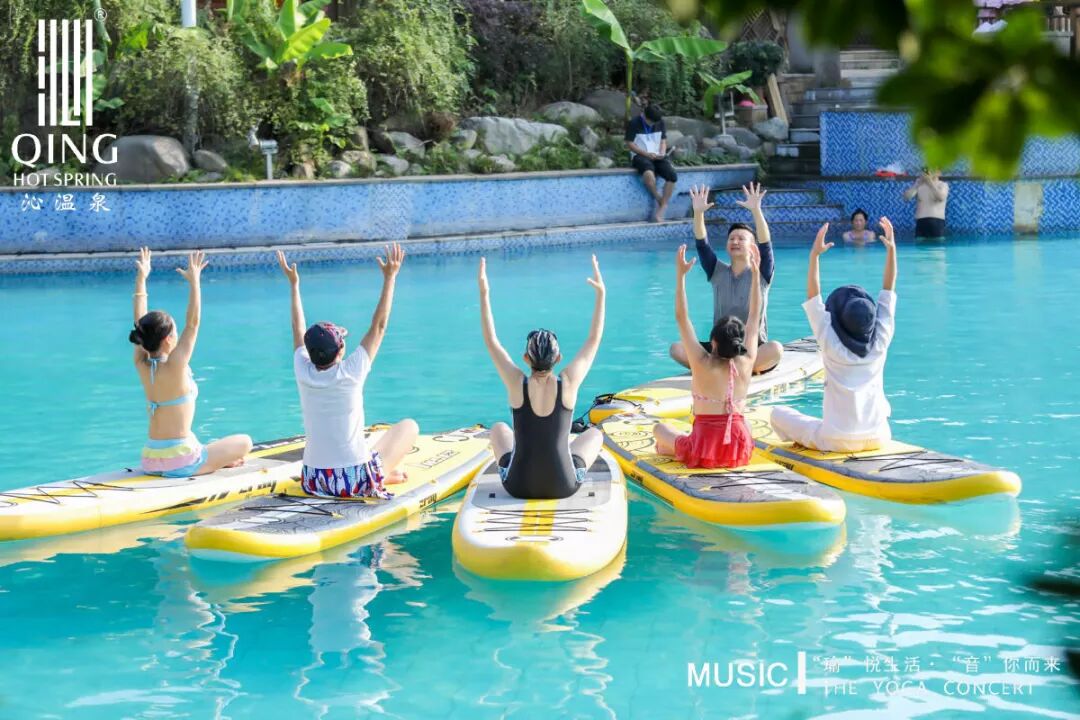 近日,在武义清水湾沁温泉度假山庄里,举办了一场瑜伽音乐大会。现场有专业瑜伽老师在温泉池中展示水上桨板瑜伽,有来自印度的瑜伽大师Amit带领大家做血液、氧气和呼吸的锻炼,有印度舞蹈团bollywood girl表演精彩的印度舞蹈,有Kirtan Mix乐队带来的印度传统乐器演奏,以及专业老师的手碟和颂钵表演、能量唱诵等。到场观众在唯美的瑜伽音乐中,感受不一样的温泉体验,同时也对瑜伽产生了新的认识。