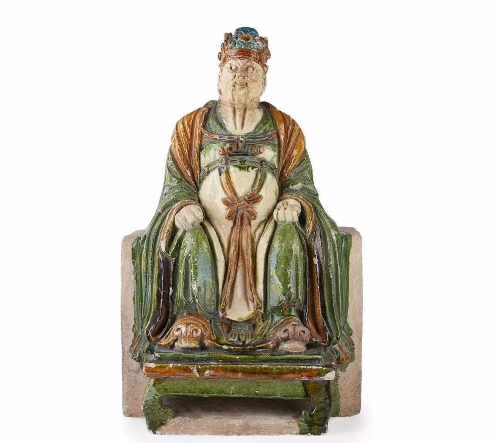 Lot 245: SANCAI-GLAZED ROOFTILE OF A MALE FIGURE THE THIRD YEAR OF DAOGUAN PERIOD, 1823
