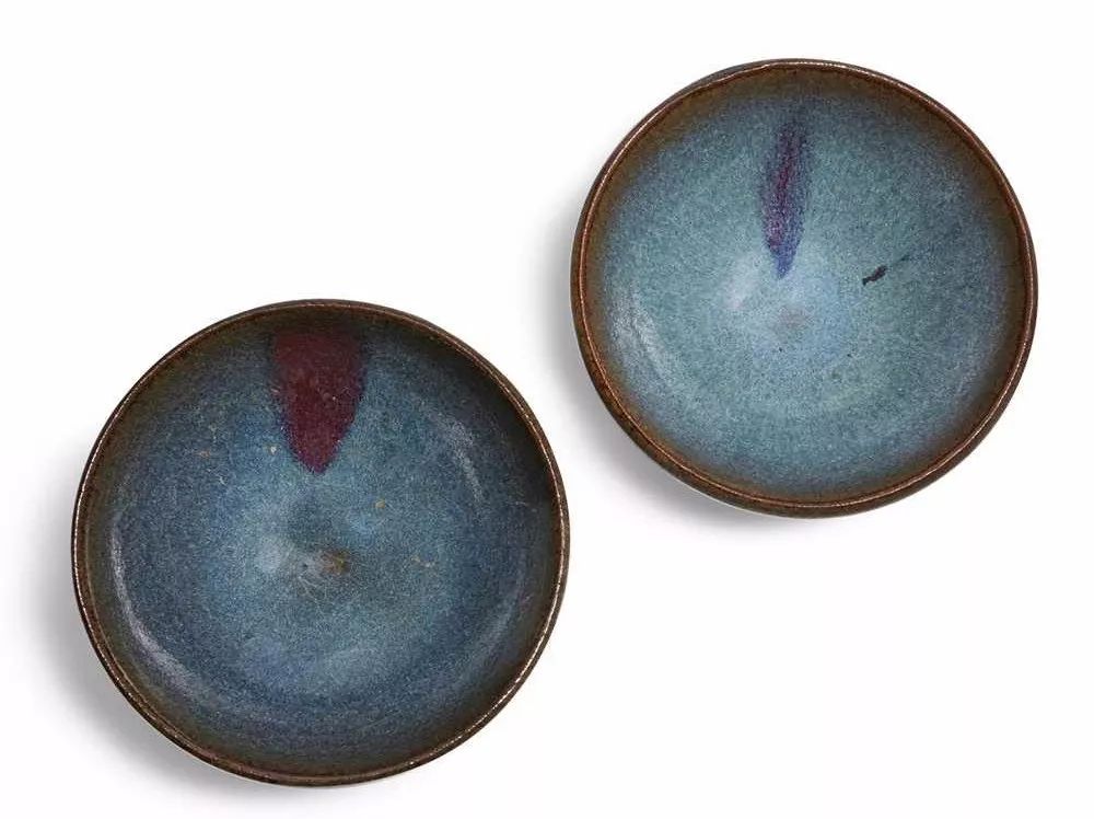 Lot 151: TWO PURPLE-SPLASHED JUN-GLAZED 'BUBBLE' BOWLS YUAN DYNASTY OR LATER