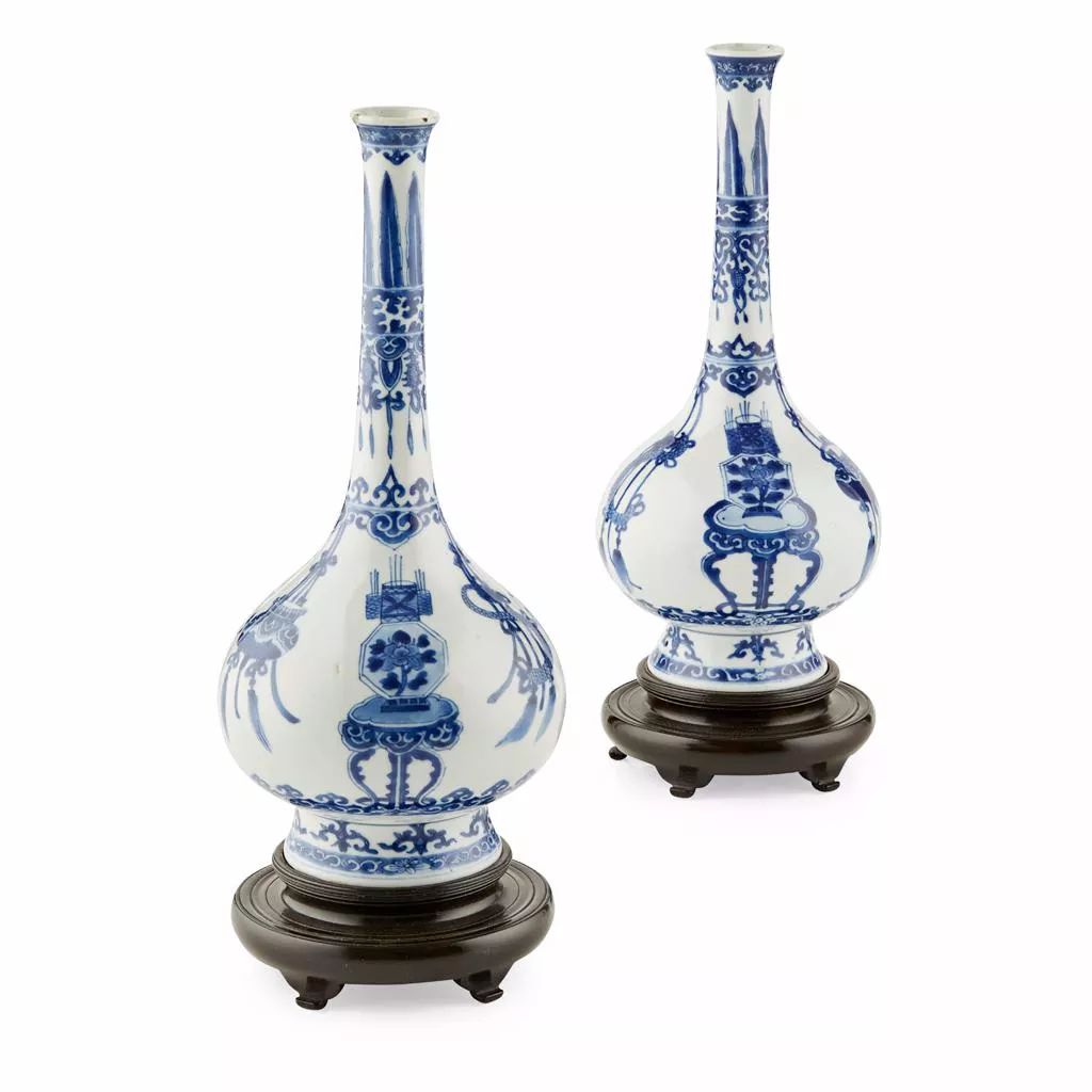 Lot 187: PAIR OF BLUE AND WHITE BOTTLE VASES KANGXI PERIOD