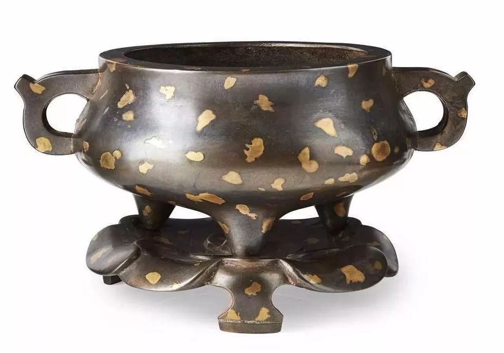 Lot 66:GOLD-SPLASHED BRONZE TRIPOD 'DING' CENSER WITH BASE XUANDE MARK, 18TH-19TH CENTURY