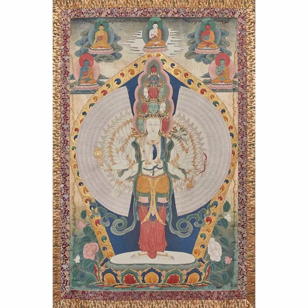 Lot 36: THANGKA DEPICTING AVALOKITESVARA SAHASRABHUJA QING DYNASTY, 18TH CENTURY