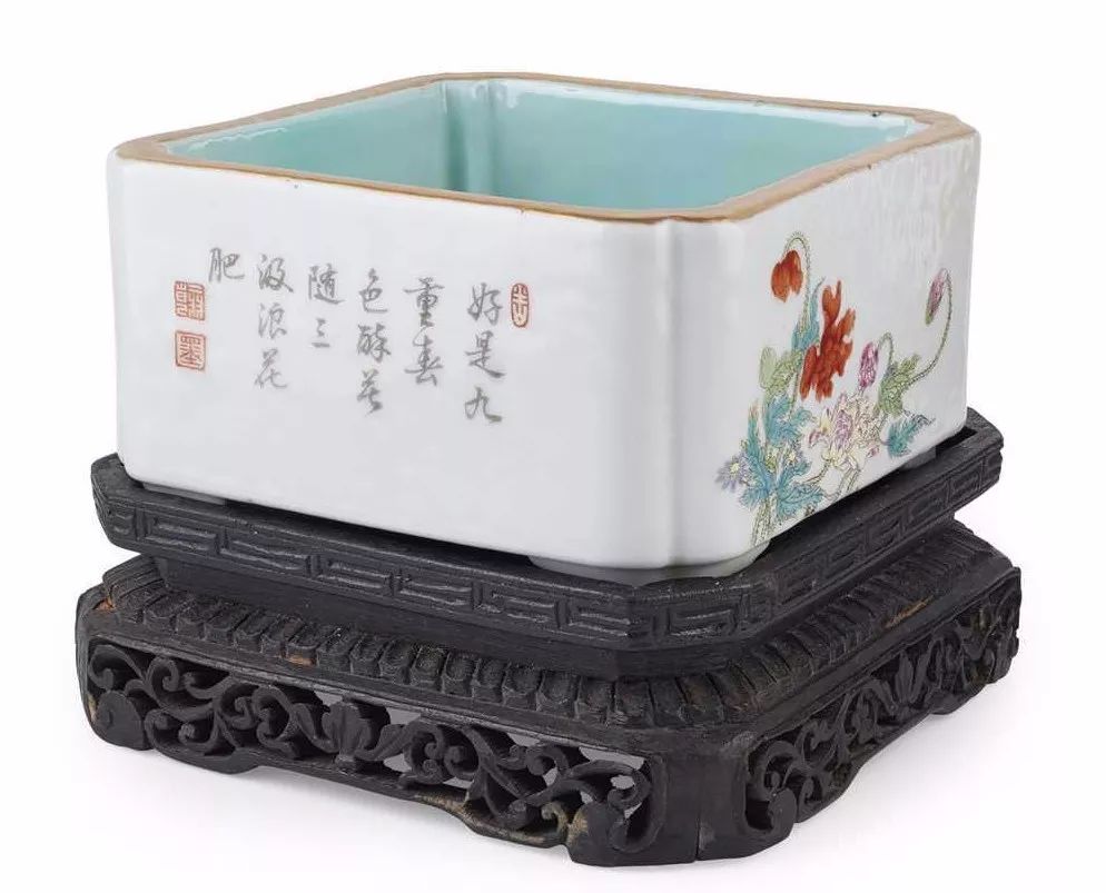 Lot 215: FAMILLE ROSE SQUARE JARDINI?RE QIANLONG MARK BUT LATER