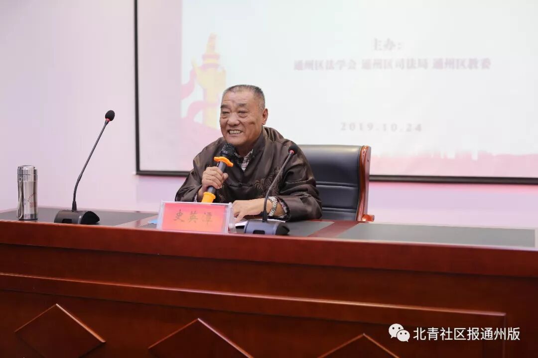 在咱们通州区,尤其是当普法活动来到学生身边时,法治和文艺总是能相得益彰。这不,杨蓉老师的普法课刚结束,国家一级演员史英潭老先生便走上讲台,以文艺为“衣”,法律知识为“里”,教起了学生们法治相声的创作。