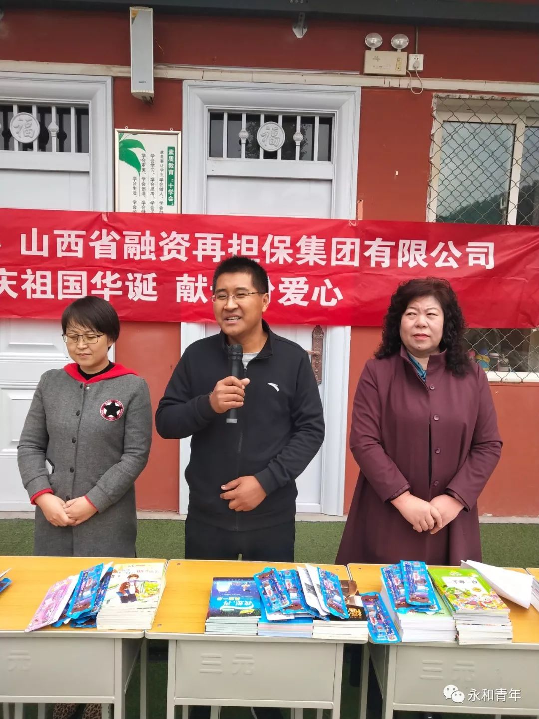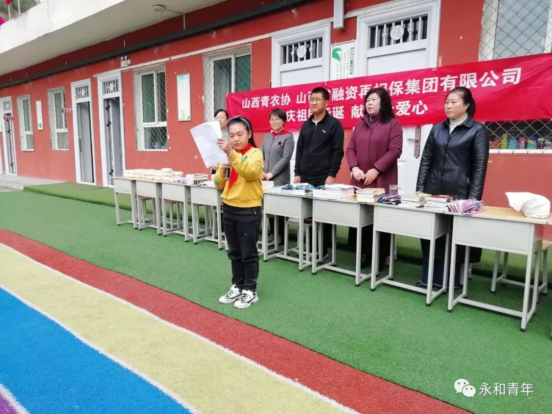10月17日上午,团县委联合省青农协、省融资再担保集团公司、县永维农业科技有限公司,在芝河镇官庄小学开展了爱心捐助活动。向学校70余名师生捐赠了图书、学习用品和爱心饼等物品,并举行了捐助仪式。团县委书记张彭,团县委副书记、少工委主任侯娜,官庄小学校长李新兰,副校长靳小英,幼儿园园长张丽萍及全体师生共同参加捐助仪式,校少先队辅导员任海珍主持仪式。