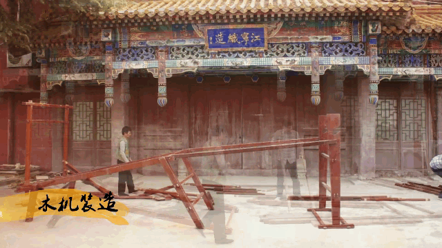造机根据所织云锦的品种、规格,把织造云锦所需的经丝按地部组织、纹部组织的不同要求分别安装到云锦木织机上,使其符合织造的需要。整个装造工艺包括打范子,捞范子,范子吊装,柱脚制督,数丝,引纤,拾纹,捞筘等工序。每台机子装一下就要花上至少三天的时间。