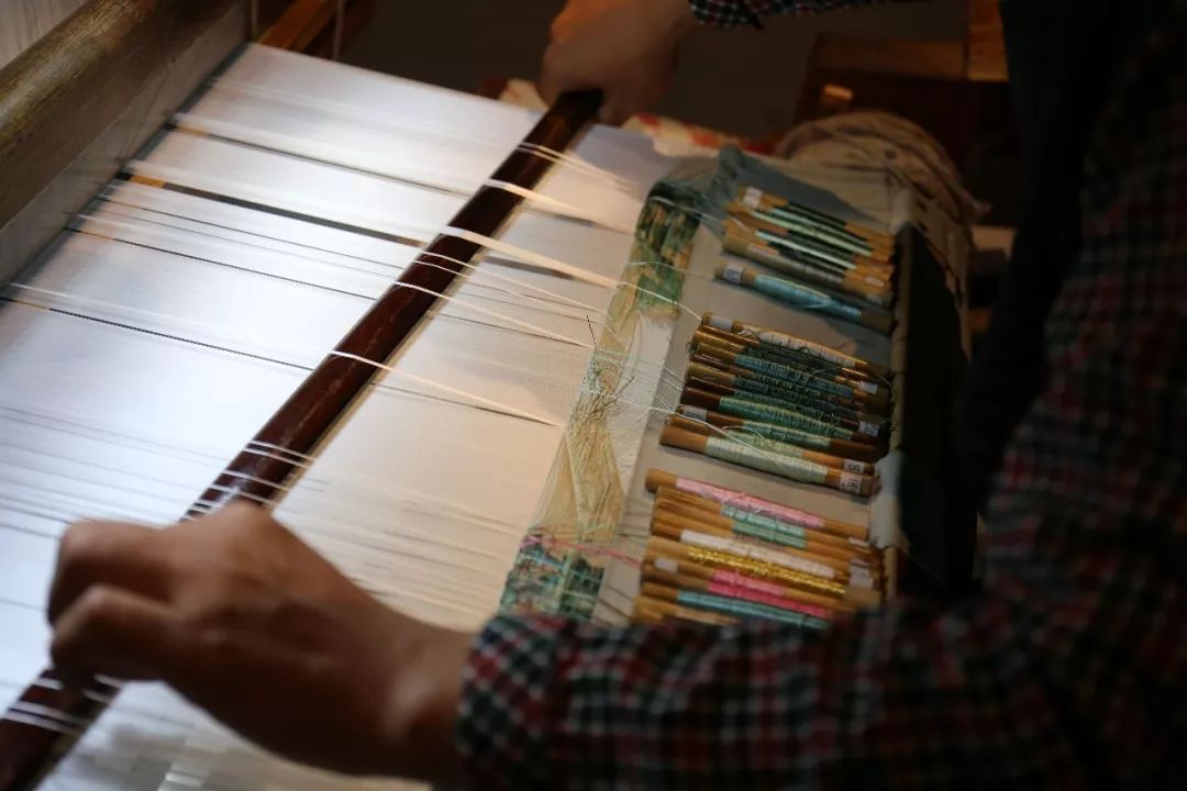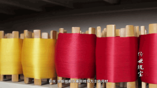 其它如金银线和孔雀羽线也要按要求加工成一定规格,供上机织造。大家想想要把孔雀羽毛揉捻成线,这得多“南”!
