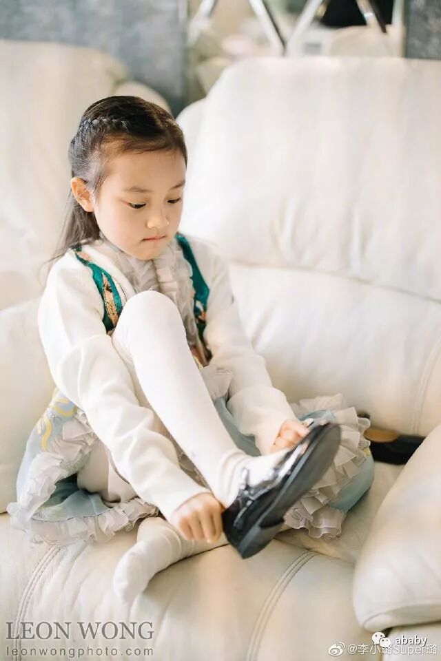 整个生日趴的主题都是小公主风,蛋糕上有南瓜马车,最上边有跳芭蕾的小人,色调都是很温柔的粉蓝色,甜馨也穿着同样色调的裙子,蓬蓬裙再加上蕾丝边,头发也特意梳了小辫子,照片中的甜馨也正一脸认真的穿着黑色小皮鞋。