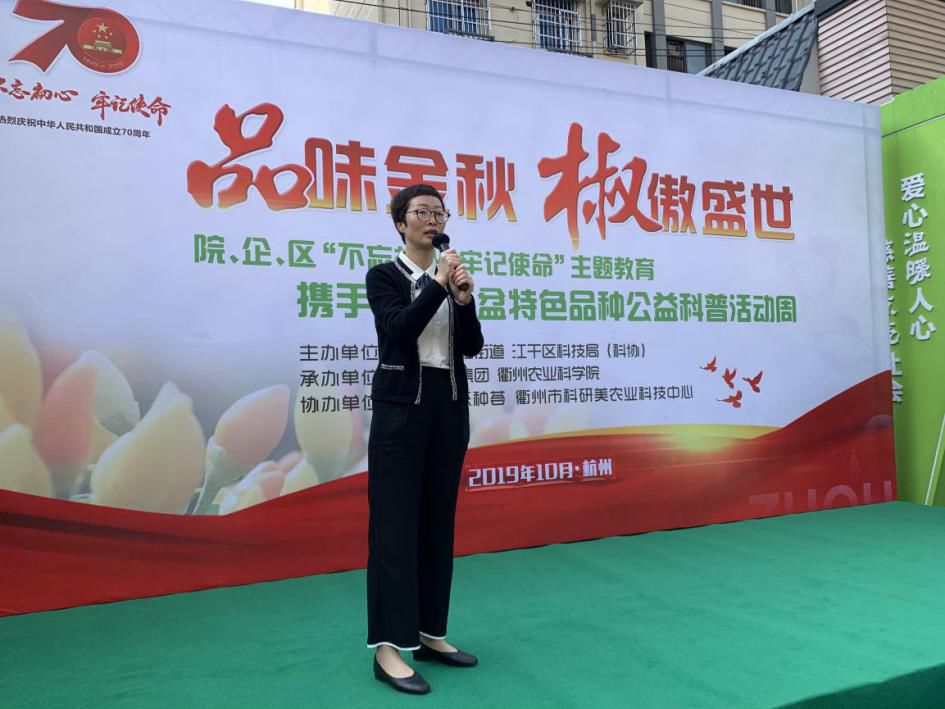 最后,江干区科技局(科协)副主席孙吉宝为本次活动致辞,凯旋街道党工委委员、办事处副主任、凯益荟党委书记张琴娟宣布“‘品’味金秋 ‘椒’傲盛世”公益科普活动周正式开幕。