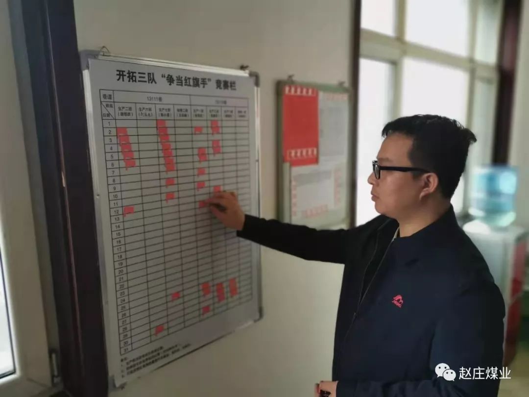 “昨天郭小酒班组完成了当班生产任务,这是奖励你们的红旗,希望你们班组能继续保持、再接再厉,同时,也希望常建阳班组人员能够迎头赶上,争取获得更多的红旗。”在赵庄煤业开拓三队班前会上,值班干部正在宣布昨天当班生产任务完成情况,并进行简单的红旗颁发仪式。