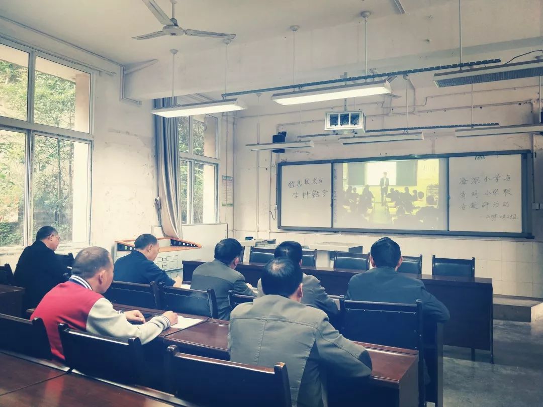 2019年10月22日我校汪强老师,利用网络直播的形式开展数学教研活动,活动旨在运用现代化教育手段让老师们的“教”变得更简单,让师生的"研"变得更有效,也让大家真切的感受到科技的魅力。金堂县白果镇清明小学也组织全体老师收看网络直播数学课,改进教学方法,转变教学模式,是清明小学新的领导班子在教学方面做出的新的尝试。清明小学和海滨小学从托管共进关系达成开始,两校积极联动。