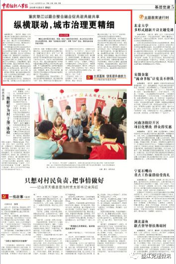 10月25日,《中国组织人事报》第5版对我县”以联合整合融合促共驻共建共享 纵横联动,城市治理更精细“的做法进行宣传。