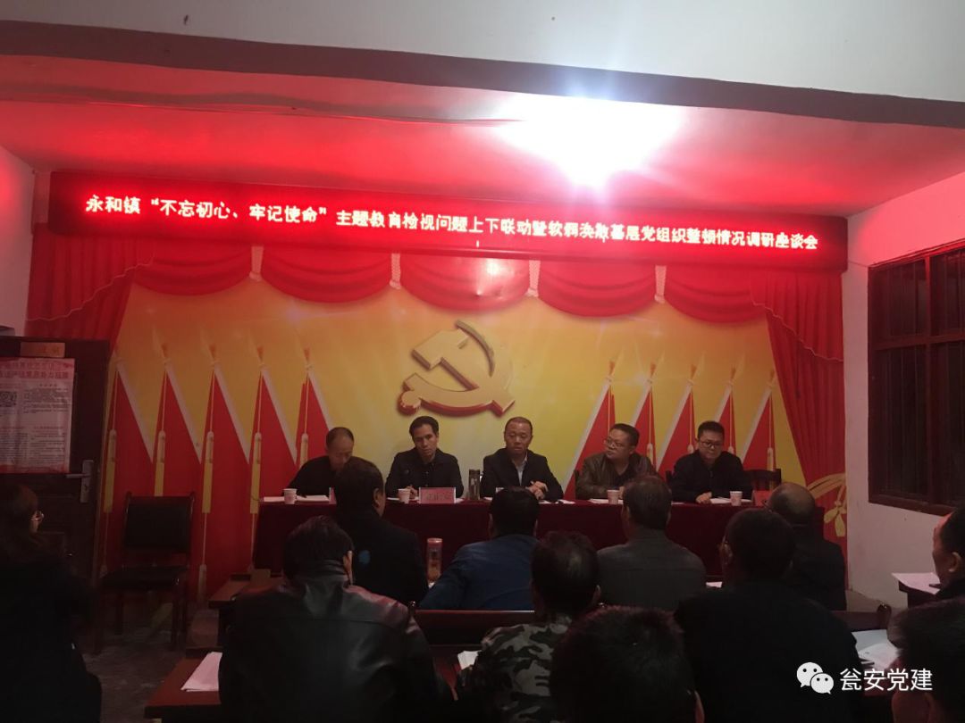 10月24日,县委常委、组织部部长、县委主题教育领导小组副组长、县委主题教育办主任刘惠江一行赴永和镇,组织召开“不忘初心、牢记使命”主题教育检视问题上下联动暨软弱涣散基层党组织整顿情况调研座谈会。