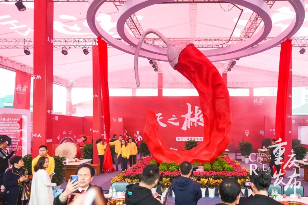 现场,人气最高的莫过于德庄展区的高6米、重3.14吨,象征着红火与热情的巨大辣椒雕塑“天之椒子”。“天之椒子”是意大利著名艺术家朱纸在意大利驻重庆总领事馆的支持下创作而成的,并在2015年米兰世博会“重庆日”上首次展出,最终由中国国际贸易促进委员会重庆市委员会及重庆德庄集团共同收藏。此次火锅节一展出,就吸引了众多市民前来。