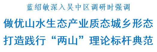 吴中区党员干部要进一步解放思想,多做一些研究性、探索性、开创性的工作,对生态保护要殚精竭虑,对产业成长要夙兴夜寐,对服务企业要不遗余力,对人民群众要以心换心,永葆新时代共产党人鲜明的政治本色,以实际行动诠释好初心使命,以优异成绩书写好践行“两山”理论的时代答卷。